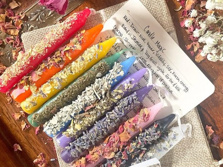 Cada vela es un canal de luz que guía tus peticiones hacia el universo. Preparadas con hierbas, esencias y símbolos rituales, son aliadas poderosas para atraer dinero, abrir caminos, proteger, sanar, manifestar amor, suerte o lo que tu alma necesite.